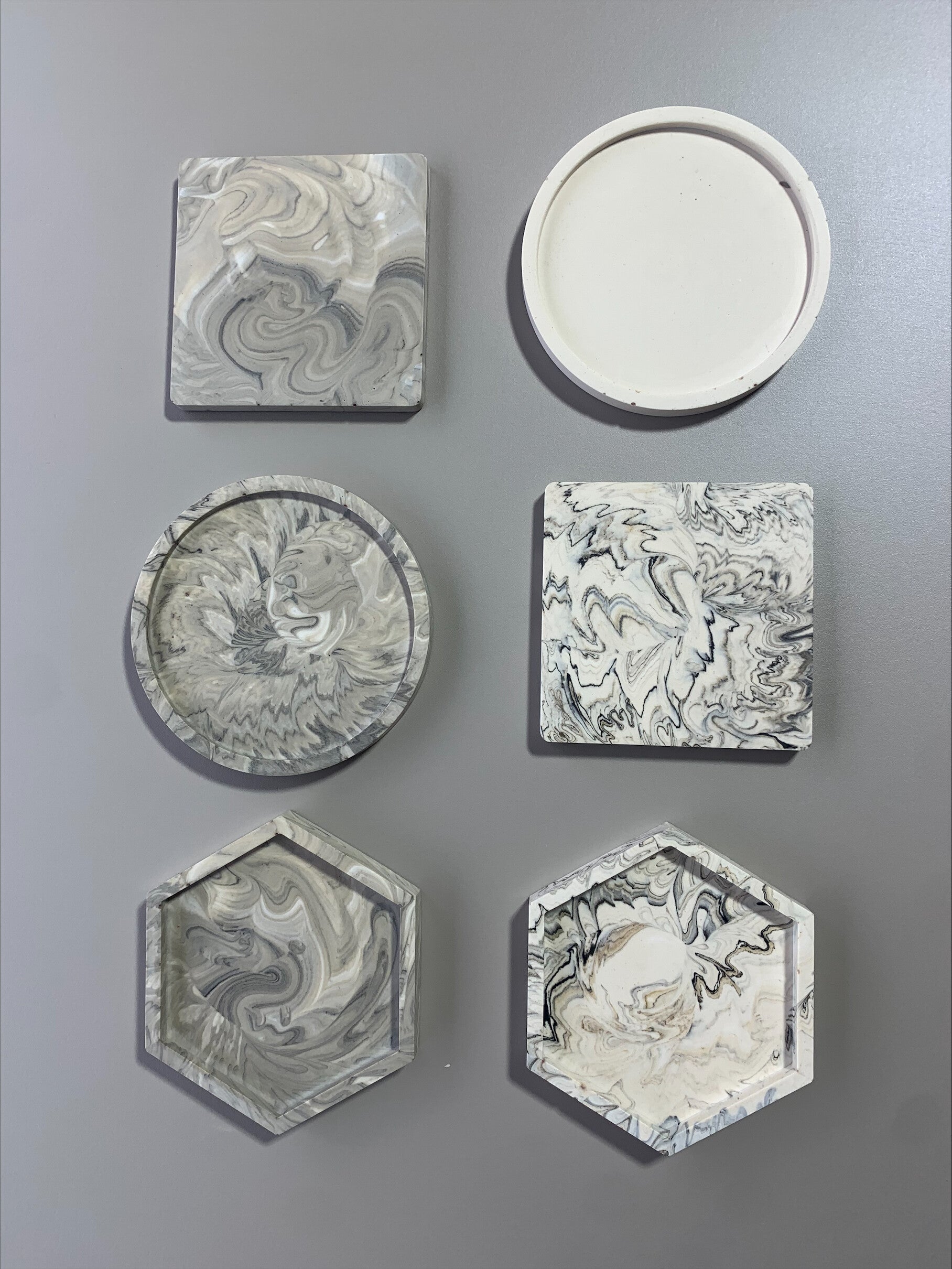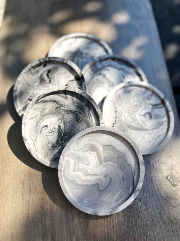 TIjdloos, modern en passend bij ieder interieur. Onderzetters met marmerlook.Deze onderzetters hebben een omtrek van 10,5 centimeter en dus perfect voor mooie grote wijnglazen. De onderzetters zijn goed stapelbaar.