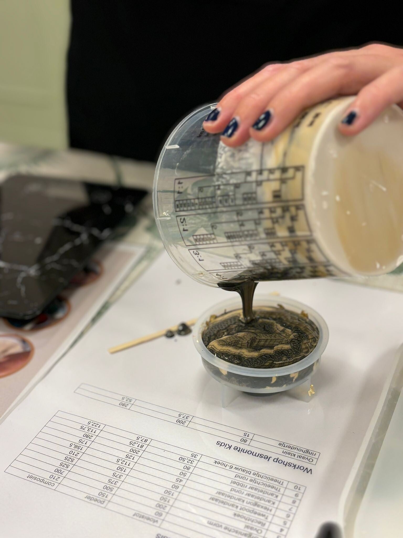 Jesmonite is een gipscomposiet zonder schadelijke stoffen. Je hebt voor het werken met Jesmonite geen bescherming nodig. Daarom is deze workshop ook geschikt voor alle leeftijden, knoeien en morsen mag! Jesmonite heeft twee componenten, een vloeistof en een poeder dat je gemakkelijk mengt met een spatel. Het materiaal heeft een korte verwerkingstijd, in ongeveer 35 minuten kun je jouw product al uit de mal halen om het vervolgens verder te bewerken. .