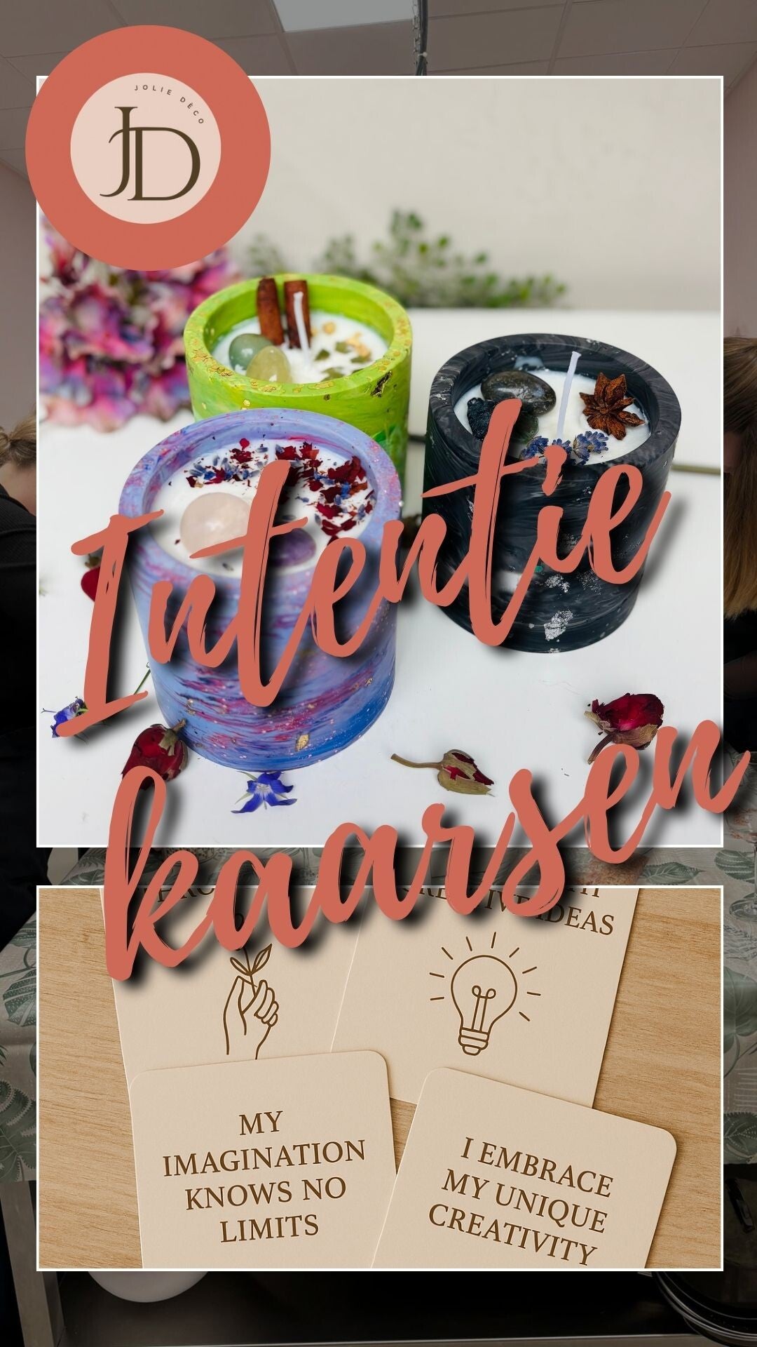 Tijdens de Intentiekaars Workshop van Jolie Deco Studio duik je in een ervaring waarbij creativiteit, rust en zelfinzicht samenkomen. In een warme, sfeervolle setting (Volendam of op locatie) begeleiden we je stap voor stap bij het maken van jouw unieke kaars — vanaf de eerste schets tot het moment dat je hem thuis aansteekt.